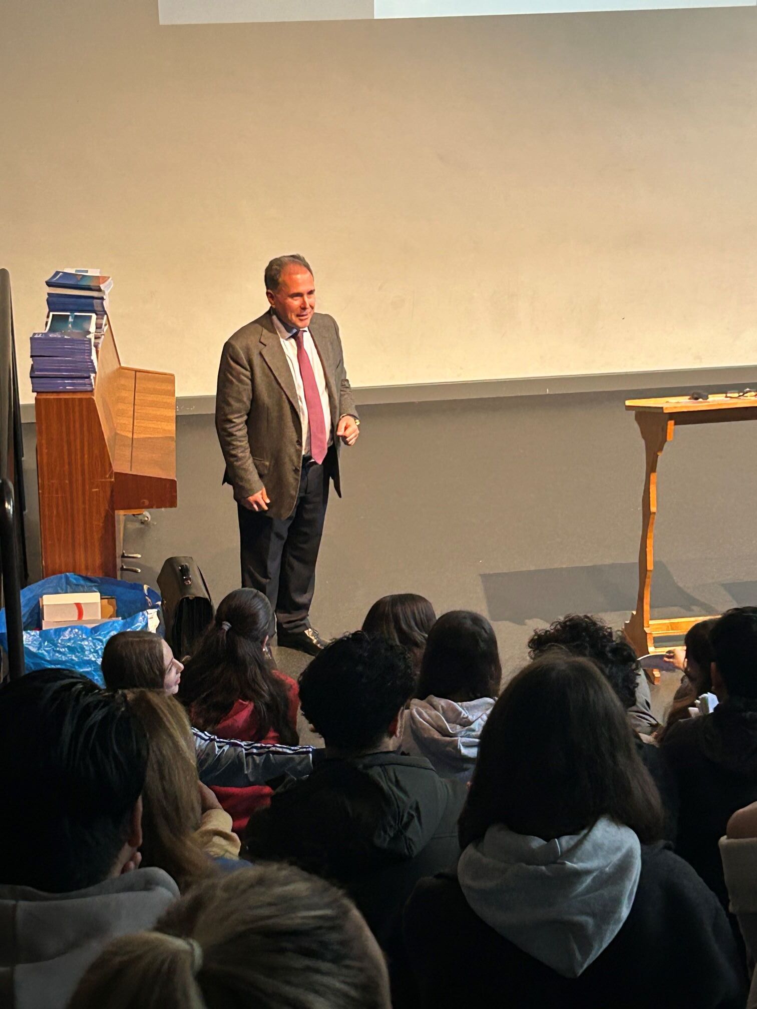 Der griechische Konsul, Ioannis Vikelidis, hat uns in der Europaprojektwoche am Donnerstag (16.10.25) besucht. Knapp 100 Schüler:innen lauschten im Hörsaal seinem Vortrag. Er hat uns einen guten Überblick über Griechenland, seine Kultur, Geschichte, Politik, Tierwelt, Geografie und vieles mehr gegeben. Anschließend hat er Fragen der Schüler beantwortet und viel Informationsmaterial über Griechenland verteilt. Wer noch etwas benötigt, findet es vorm Schulbüro.